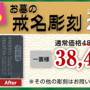 2026年3月21日 / 最終更新日時 : 2026年3月20日 naigai セール お墓のご戒名彫刻お忘れではないですか? 創業からご愛顧頂き59年間の感謝の気持ちを込めて「誕生祭」を開催中しています! お墓への「ご戒名」の彫刻お忘れではないですか? 追加で「家紋・屋号を追加で彫刻したい」「図柄を追加で彫刻したい」「文字の色がはがれてきたので […]