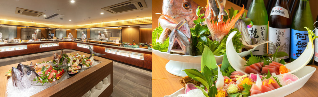 ミシュランガイド宮城に掲載、五つ星の宿に認定されている「ホテル松島大観荘」さん、1階にある「磯魚(いさな)」さんのバイキングにおじゃましてきました!