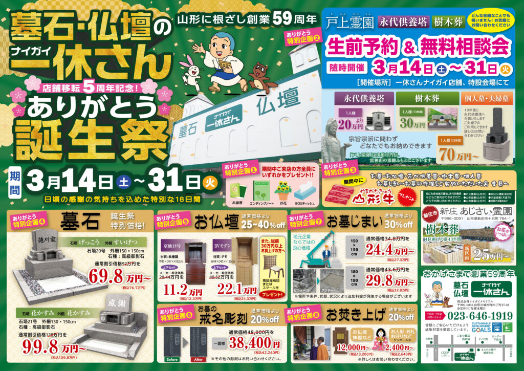 山形に根差して創業59周年&店舗移転5周年!日頃の感謝の気持ちを込めた特別なセールです。